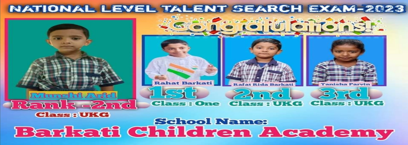 আপনাদের হার্দিক শুভ কামনায় ছোট্ট ছোট্ট পায়ে এগিয়ে চলেছে বরকতি চিলড্রেন একাডেমি। বিগত বছরগুলিতে আমাদের ছাত্র-ছাত্রীরা ন্যাশনাল লেভেল ট্যালেন্ট সার্চ পরীক্ষা, আবৃত্তি, ছবি আঁকা প্রতিযোগিতায় স্থান দখল করেছে। আন্ত: স্কুল ফুটবল প্রতিযোগিতায় সুনাম অর্জন করেছে। আপনাদের সক্রিয় সহযোগিতায় আমরা রক্তদান শিবির, নারী ও শিশুদের বিনামূল্যে স্বাস্থ্য পরীক্ষা শিবির, চক্ষু পরীক্ষা শিবির, বিনামূল্যে ওষুধ বিতরণ, ঈদ মিলন উৎসব, চড়ুই ভাতি, ক্রীড়া উৎসব, স্পট ট্যালেন্ট সার্চ, মেধা পুরস্কার প্রদান, বৃক্ষ প্রদান, ইফতার মজলিস, শিক্ষক দিবস, স্বাধীনতা দিবস উদ্যাপন, ছবি আঁকা, আবৃত্তি, কুইজ প্রতিযোগিতা, হাতের লেখা, স্পোকেন ইংলিশ প্রশিক্ষণ শিবির ইত্যাদির আয়োজন করতে পেরে আমরা আনন্দিত।